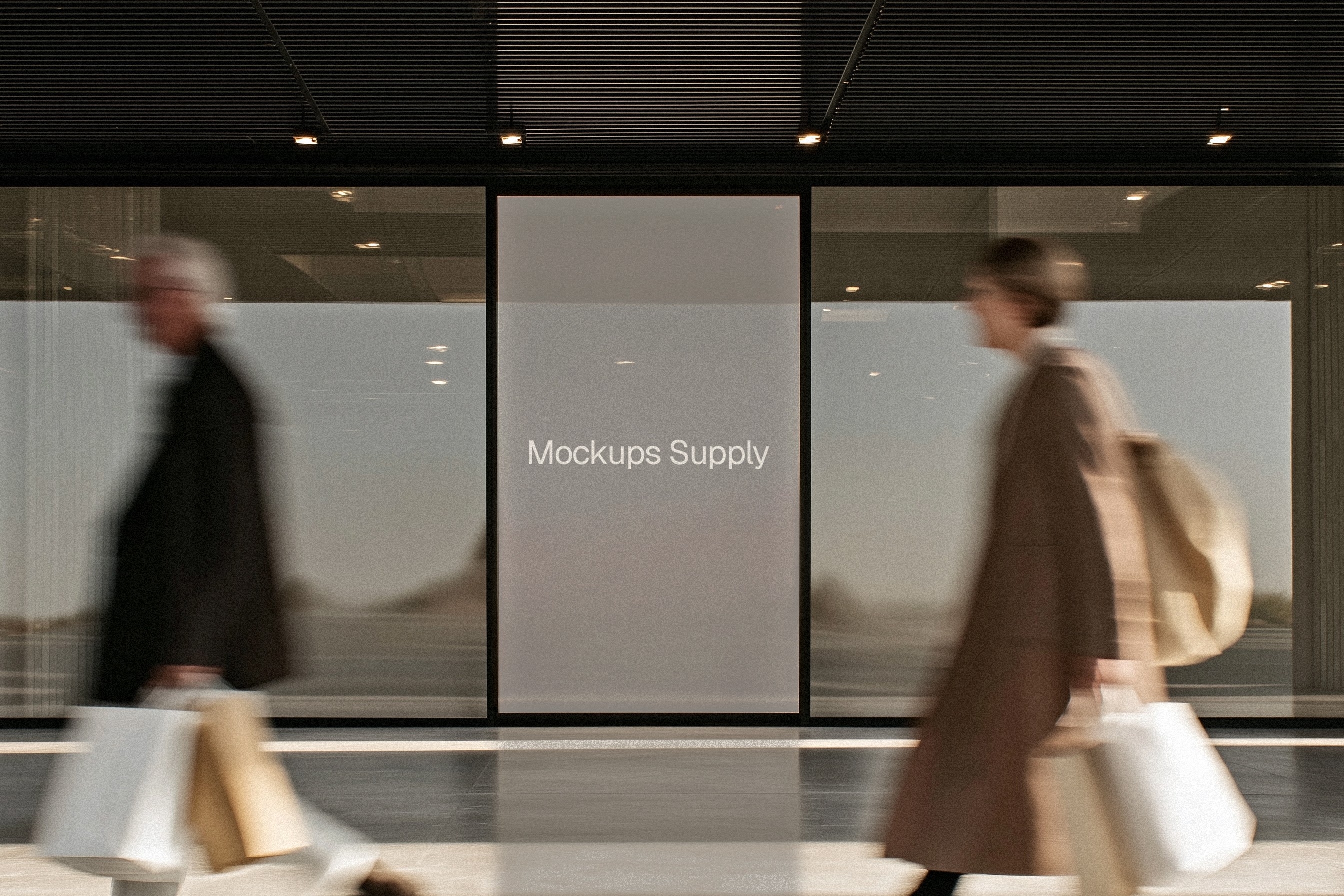 Showcase your advertising design with a digital screen mockup placed outside a modern mall between large window panels. This Photoshop PSD features clean architectural reflections, soft natural lighting, realistic material textures and fully editable Smart Object layers for quick customization. Perfect for outdoor advertising, retail campaigns, signage presentations, branding proposals, portfolio visuals and social content. Insert your design instantly for a polished, commercial-ready preview.
