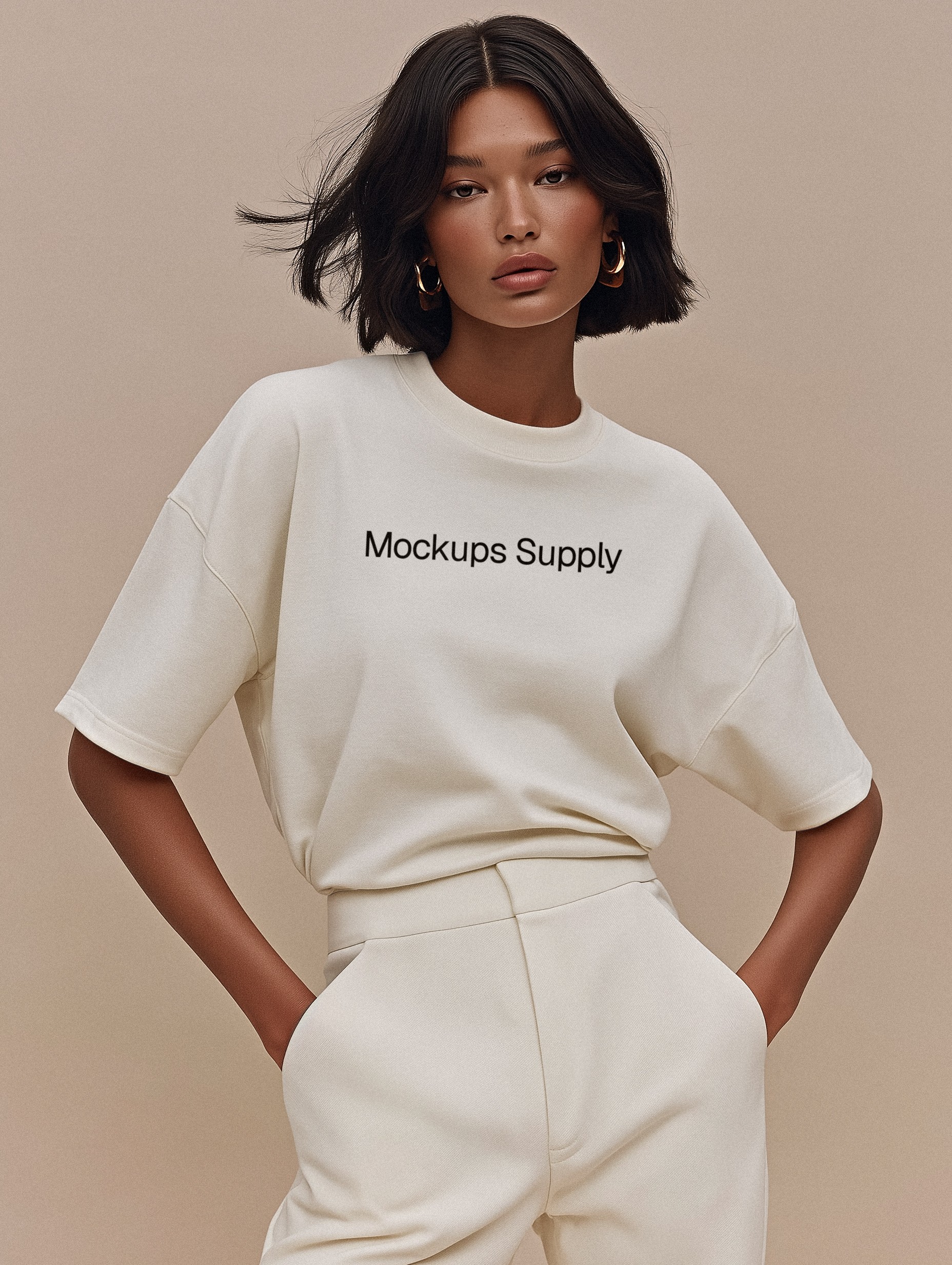 Showcase your apparel branding with a premium oversized cotton T-shirt mockup on an elegant female model. Designed with realistic cotton texture, soft shadow gradients and smart-object layers, this Photoshop PSD is perfect for fashion brands, merch collections, portfolio presentations, e-commerce listings and social visuals. Apply your design instantly for polished, commercial-ready apparel imagery.