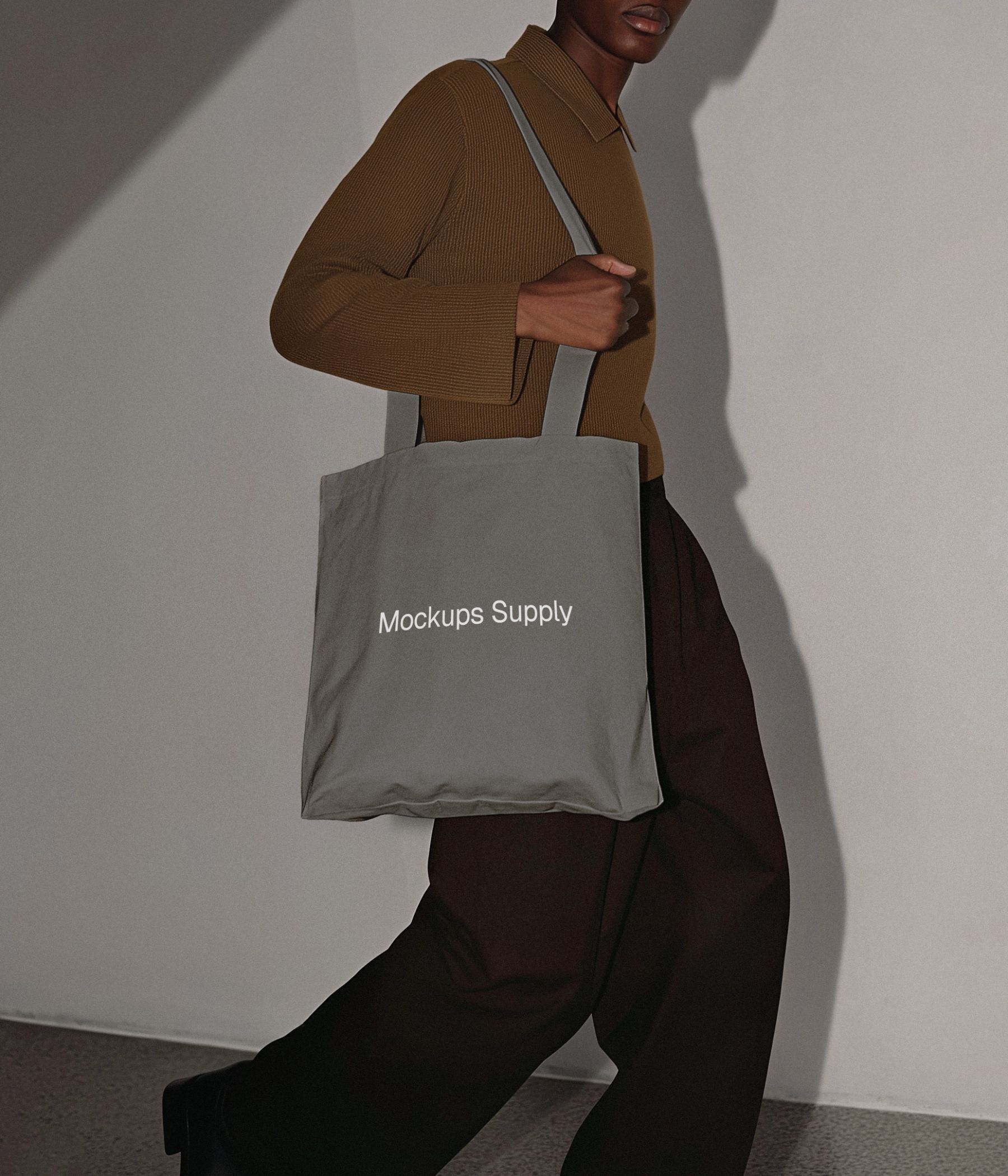 Present your branding with a classic cotton tote bag mockup featuring a black male model wearing the bag on the shoulder. This high-quality Photoshop PSD mockup includes realistic cotton fabric texture, natural lighting, soft shadows, and fully editable Smart Object layers. Ideal for logo design, apparel branding, eco brands, merch collections, ecommerce listings, portfolio visuals, and social media content. Apply your design instantly for a clean, professional, commercial-ready presentation.